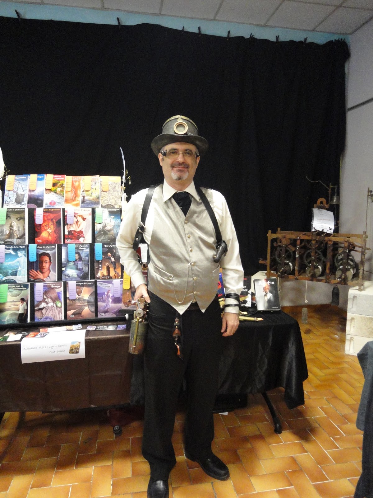 Ensuite, dans le salon, j’ai encore pu discuter avec quelques auteurs plus ou moins connus. Et franchement, rien que pour le plaisir des yeux et de voir tous ces gens vêtus à la mode steampunk, eh ben ça valait le coup !