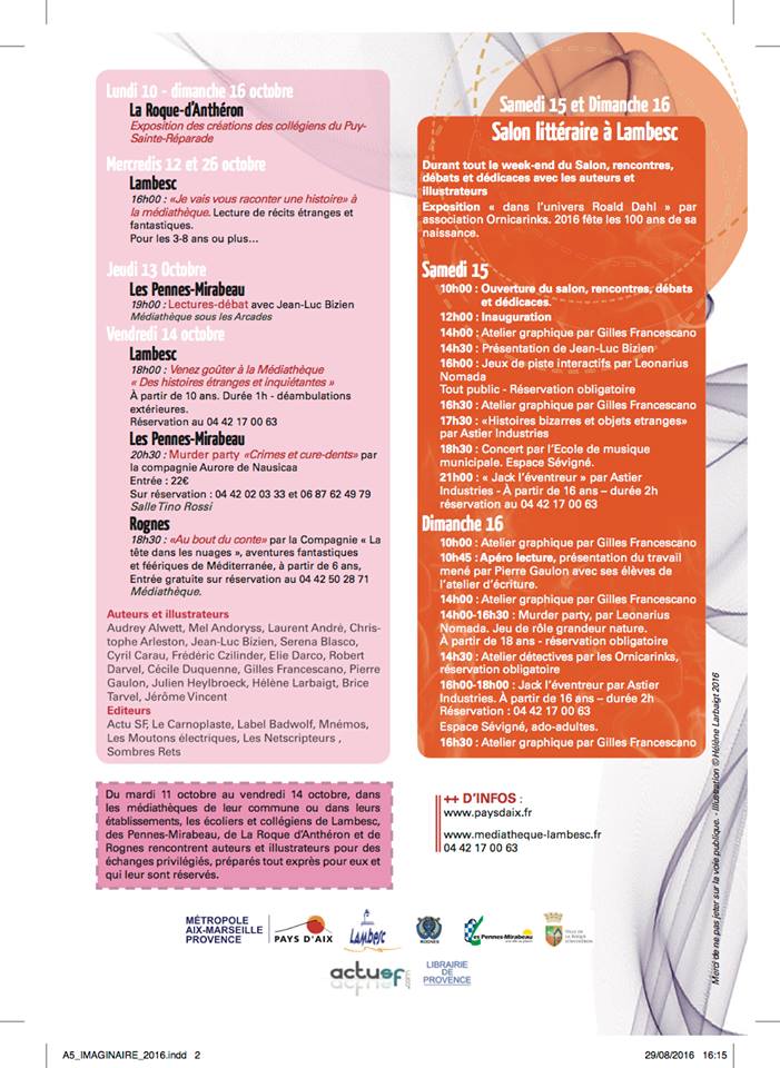 Et pour ceux qui n’en auraient encore pas assez, je vous invite à aller faire un tour sur la page du programme culturel de la ville de Lambesc ainsi que sur la page Facebook de l’événement.