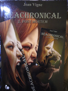 Continuant mon chemin sur le stand des éditions du Chat Noir, j’ai retrouvé Jean Vigne dont j’avais fait la connaissance au salon du vampire de Lyon l’an dernier et qui m’avait si bien « vendu » son premier tome de Néachronical. Il allait donc de soi qu’il me fallait le second ! On a même essayé de me faire prendre le troisième en même temps, mais j’ai tenu bon, j’ai résisté… jusqu’au prochain salon ?