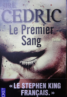 Je suis ensuite allée voir Sire Cédric qui était à deux doigts de partir manger. Ouf ! Et vous savez quoi ? Il m’a reconnue !!! Je l’avais rencontré l’an dernier lors du salon du polar à Villeneuve les Avignon où je lui avais pris De fièvre et de sang. Etant donné que j’avais aimé ce mélange thriller-fantastique, il me fallait la suite ! Je lui ai donc demandé Premier sang. Hélas, intimidée que j’étais d’avoir été reconnue, je n’ai pas pu échanger grand chose avec lui, ni pensé à le prendre en photo pendant qu’il me faisait ma dédicace… Il faut dire que sur la couverture, il n’y a rien de moins écrit que « le Stephen King français » !