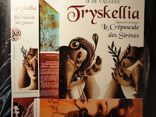 Ainsi, chemin faisant, je suis tombée sur Didier de Vaujany qui m’a présenté sa saga Tryskellya. Et si, déjà, les couvertures des deux tomes me plaisaient, sa présentation et le fait que ses sirènes soient à des lieux de la représentation que l’on s’en fait m’ont d’autant plus attirée. Hélas, toujours à cause de mon banquier, je n’ai pu prendre que le premier tome. Mais s’il me plait, il va sans dire que j’aurai vite fait de me procurer le deuxième… et le troisième quand il existera !